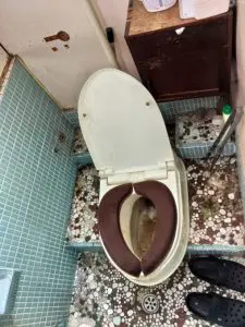 築使用40年以上、一軒家。トイレットペーパーの使いすぎと何かと一緒に流した可能性があるとのことで依頼。点検では、トイレットペーパー以外で一緒に流したかの確認は出来ませんでしたが、トイレットペーパーと劣化によるつまりだと予測しました。