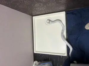 既存の洗濯パンを取外しましたら、古い配管は切除し新しい配管、新しい洗濯トラップを組み付けます。洗濯機を再設置して通水確認をして完了となりました。